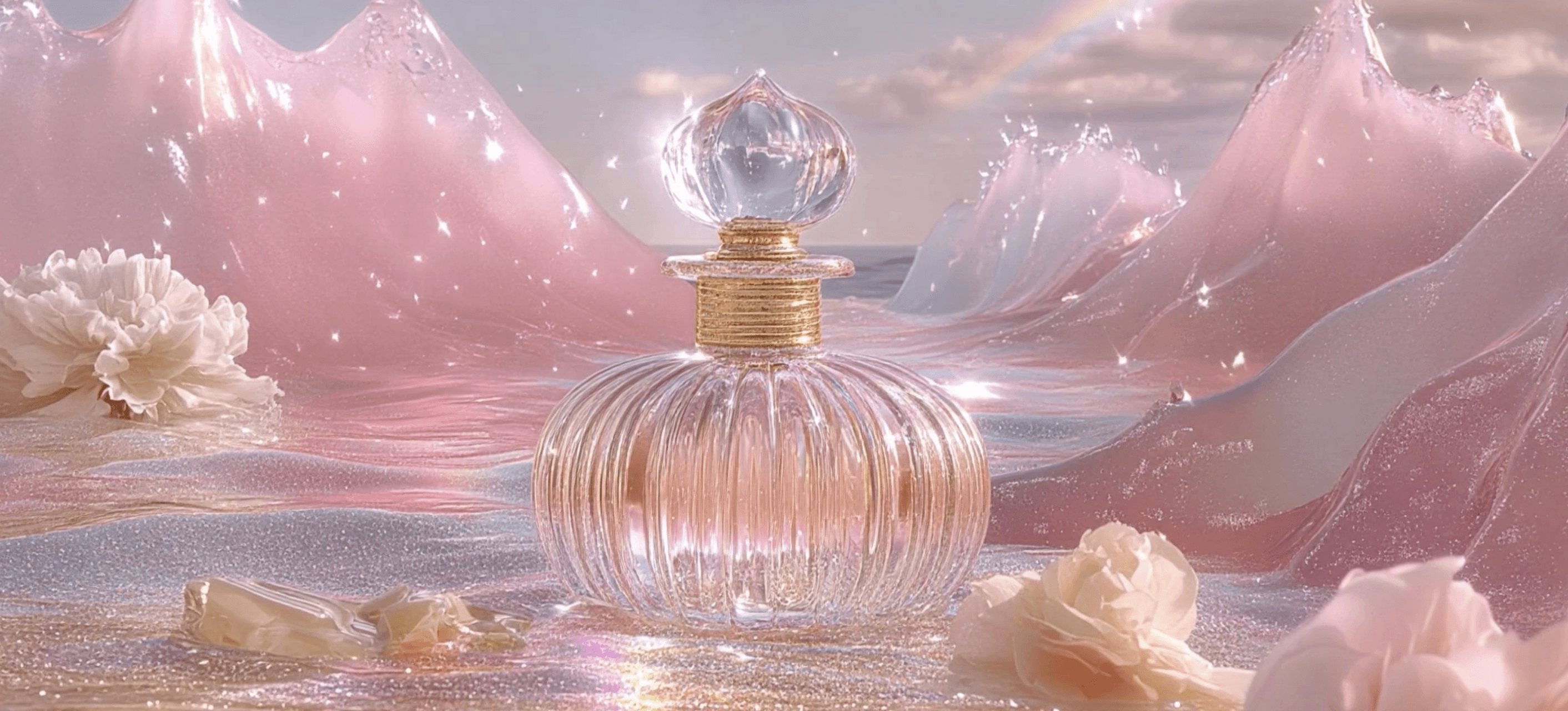 In this visual narrative, I explore the intersection of fantasy, luxury, and sensory storytelling using a blend of MidJourney and Kling AI. It begins with a lone figure drifting through crystalline waters, beneath a soft, prismatic sky. A radiant rainbow arches across pink velvet mountains—evoking a sense of calm, wonder, and emotional clarity. This opening shot, imagined in MidJourney, invites the viewer into a surreal world where every texture glistens and every color whispers a story. As we travel deeper into this dreamscape, the perfume bottle emerges—delicately embedded within shimmering crystal terrain. The glass shimmers with subtle refractions, and florals bloom around it, soft and weightless. Using Kling AI, I animated the scene into motion: the reflections ripple gently, petals sway as if breathing, and light pulses softly with each beat of the narrative. The goal was to create more than an ad—I wanted to shape a feeling. Each frame is designed to evoke the sensation of scent without words: crisp, delicate, ephemeral. Tools Used: 1. MidJourney: For worldbuilding, composition, and art direction of static frames 2. Kling AI: To animate light, liquid, and atmospheric motion 3. ChatGPT + custom prompting**: To refine tone, symbolisms, and develop a cohesive story arc This project is part of my ongoing series exploring how AI can be used to craft high-end, emotionally resonant brand visuals—especially within the beauty and fragrance industry.