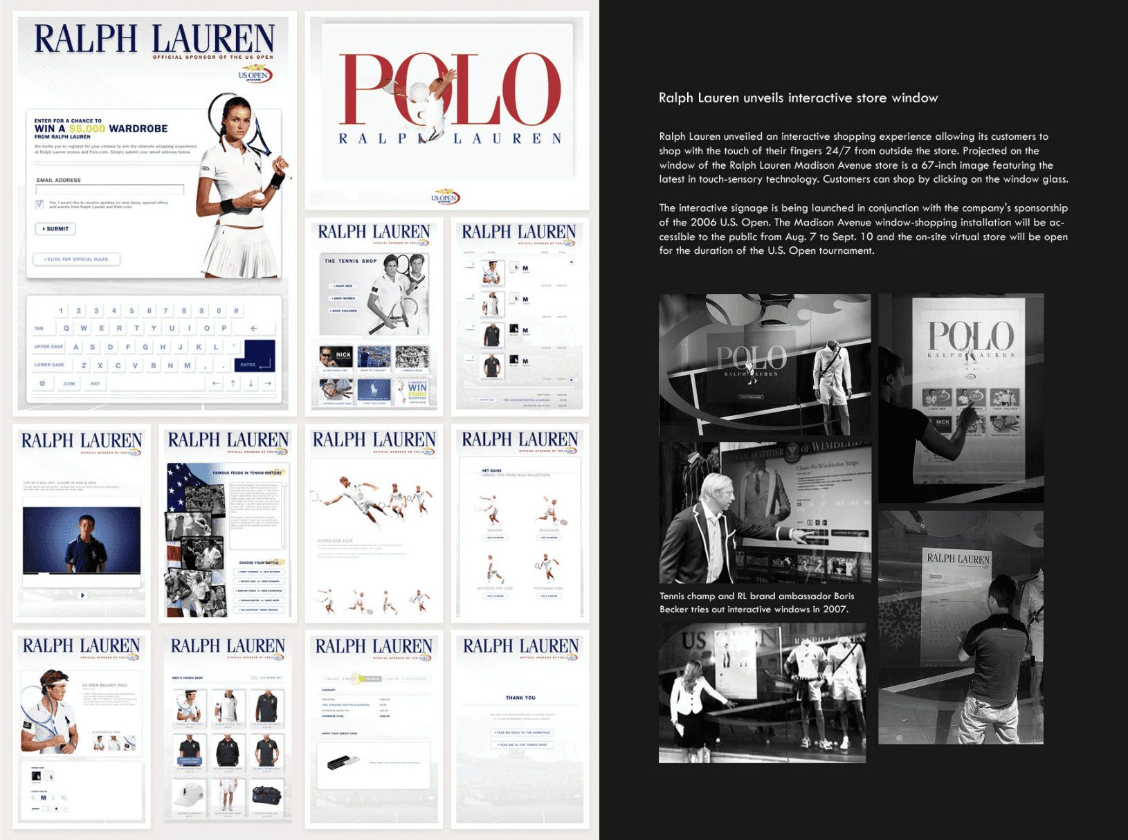 A full-time onsite Designer at the Ralph Lauren in NYC | E-commerce Website | E-mail marketing | Mini sites | Online Ads | Mobile | Collection app | International site for 12 countries | Kiosk | US Open Store Design